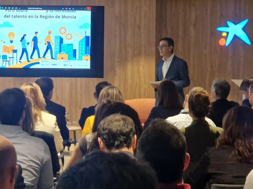 CaixaBank y la Confederación Regional de Organizaciones Empresariales de Murcia (CROEM) han celebrado este jueves en el ágora del edificio corporativo que la entidad tiene en Murcia, el ‘Foro sobre FP Dual y la necesidad del talento en la Región de Murcia’, un encuentro que ha reunido a más de 70 responsables de recursos humanos y representantes institucionales.