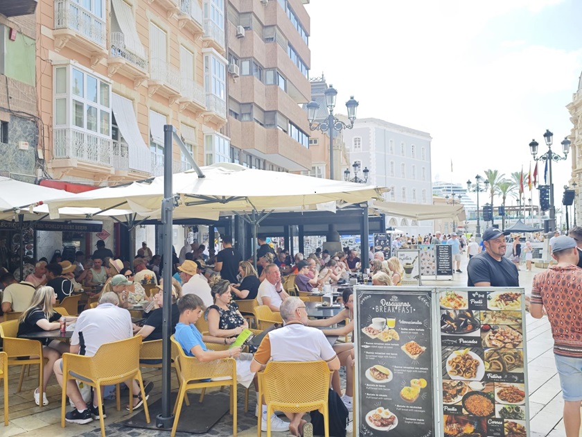 Terraza llena en un local de la Plaza del Ayuntamiento de Cartagena durante este mes de julio. Foto: E.C.