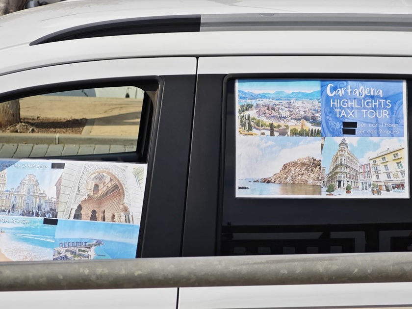 Los taxis ofrecen rutas guiadas a los turistas procedentes de los cruceros en el puerto de Cartagena. Foto: P.B.