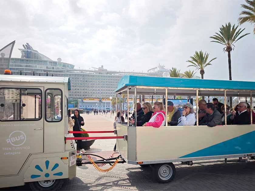 Tren turístico frente al crucero Allure of the Seas atracado en el Puerto de Cartagena el jueves 20 de febrero de 2025. Foto: P.B.