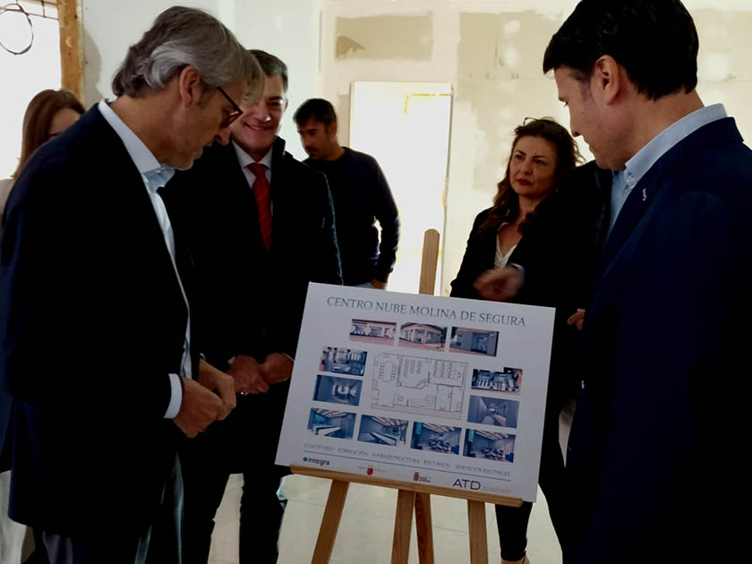 El consejero de Economía, Hacienda, Fondos Europeos y Transformación Digital, Luis Alberto Marín, visitó las obras del centro acompañado por el alcalde de Molina de Segura, José Ángel Alfonso, y explicó que los cuatro Centros Nube que se están poniendo en marcha en la Región (Cartagena, Murcia, Molina de Segura y Lorca) buscan fortalecer el ecosistema digital regional.