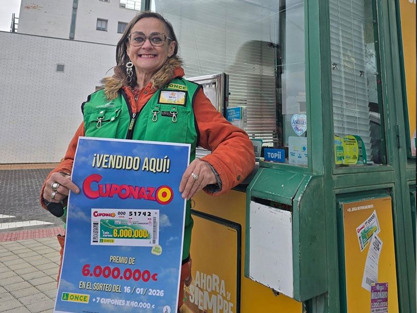 El Cuponazo de la ONCE ha repartido 6.280.000 euros en Yecla en el sorteo celebrado el viernes 16 de enero. El premio se ha distribuido en ocho cupones, uno de ellos agraciado con el premio mayor de seis millones de euros y otros siete premiados con 40.000 euros cada uno.