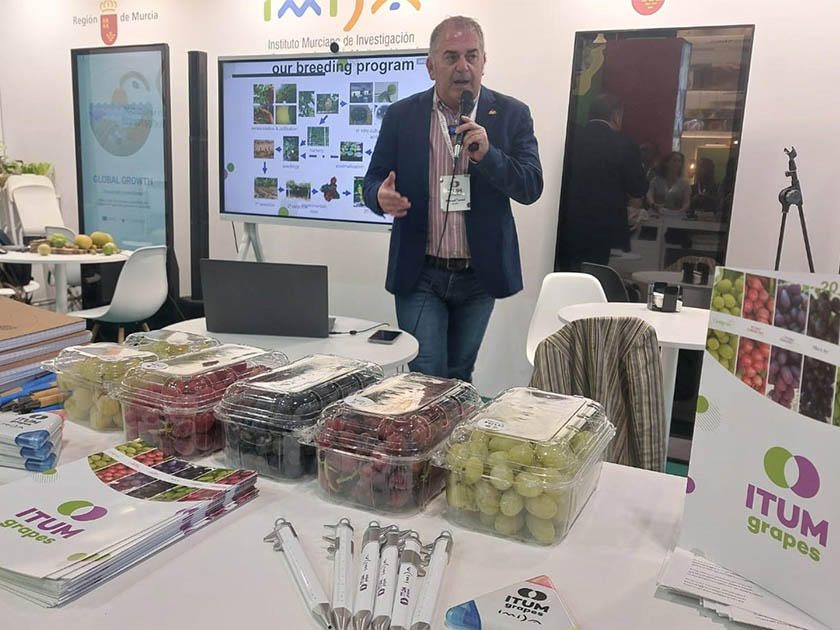 Durante la feria, el centro mostró nuevas variedades de frutales y hortícolas, entre las que destacan 23 variedades registradas de melocotón de interés comercial y mejor adaptadas al clima actual. En colaboración con ITUM, se están desarrollando 20 variedades de uva de mesa, ya cultivadas tanto en la Región de Murcia como en otros países. Además, se ha iniciado el proceso de registro de 4 nuevas variedades de uva de vinificación, que se suman a otras 6 registradas recientemente, convirtiendo al centro, según el Imida, en el primero en lograrlo en España.