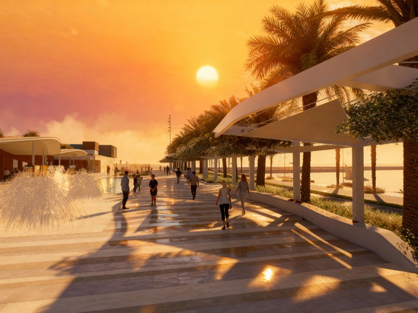 La sostenibilidad y el confort climático son protagonistas del diseño, que incorpora cubiertas ajardinadas, pérgolas ligeras con vegetación, jardineras y una lámina de agua que ayudará a refrescar el ambiente y a crear un espacio más agradable. El paseo se completa con una senda compartida para peatones, ciclistas y patinetes, reforzando una movilidad más saludable y respetuosa con el entorno.
