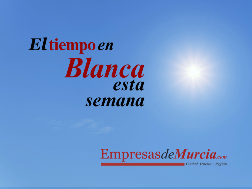 El tiempo en Blanca mejorará considerablemente a partir del jueves, que amanecerá con cielos despejados y sin ninguna probabilidad de lluvia. Las temperaturas serán más frescas, con una máxima de 24º y una mínima de 17º.