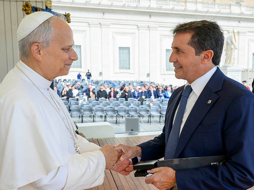 Ginés Padilla, presidente de la empresa cartagenera Puertas Padilla, fue recibido por el Papa León XIV durante la Audiencia General en la Plaza de San Pedro. El encuentro permitió al empresario presentar las actividades de responsabilidad social y desarrollo social que la empresa realiza en Perú, país donde el Pontífice desempeñó funciones pastorales durante más de veinte años.