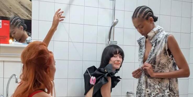 Para la ocasión, la creadora de 34 años sacó su desfile a la calle, «para el disfrute de todos los públicos». En concreto, mostró las prendas desde el interior de un camión y frente a un típico café parisino del barrio de Le Marais. Completan la performance la recreación de un cuarto de baño de impoluto blanco desde donde exhibió 24 conjuntos: vestidos, prendas de punto, chaquetones, pantalones, entre otras propuestas, en los que el color fue uno de los grandes protagonistas, junto con estampados florales, de rayas y rombos.