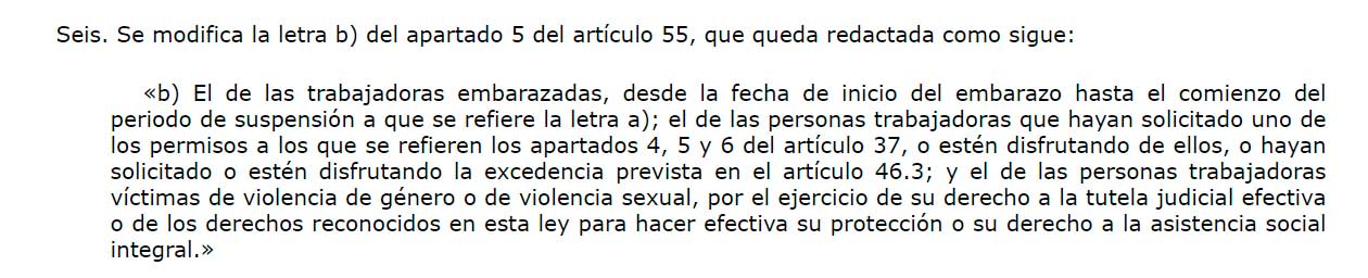 El error se encuentra en la disposición final novena de la Ley de Paridad, en la que se modifica el artículo 55 del Estatuto de los Trabajadores, en concreto, el apartado referido a los despidos nulos.
