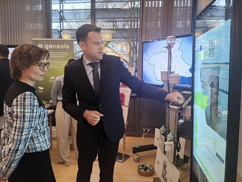 El director general del Agua, José Sandoval, presentó el espacio expositivo junto al equipo técnico de la Consejería de Agua, Agricultura, Ganadería y Pesca y con la coordinación de la Oficina de la Región en Bruselas. El stand expuso el sistema regional de depuración y reutilización, que alcanza un 96% de reutilización del agua depurada, apoyado en 100 Estaciones Depuradoras de Aguas Residuales y en décadas de inversión en saneamiento, regeneración e innovación. Sandoval afirmó que «la Región de Murcia demostró una vez más que es un referente europeo en gestión hídrica circular, eficiencia y tecnologías aplicadas al agua».