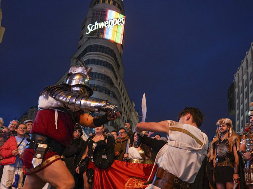 Una representación de Tropas y Legiones, encabezada por el presidente de la Federación de Tropas y Legiones, recorrió por la tarde el itinerario comprendido entre la plaza de Callao y la Puerta del Sol. El desfile atrajo la atención de viandantes, madrileños y turistas que se encontraban en la zona.