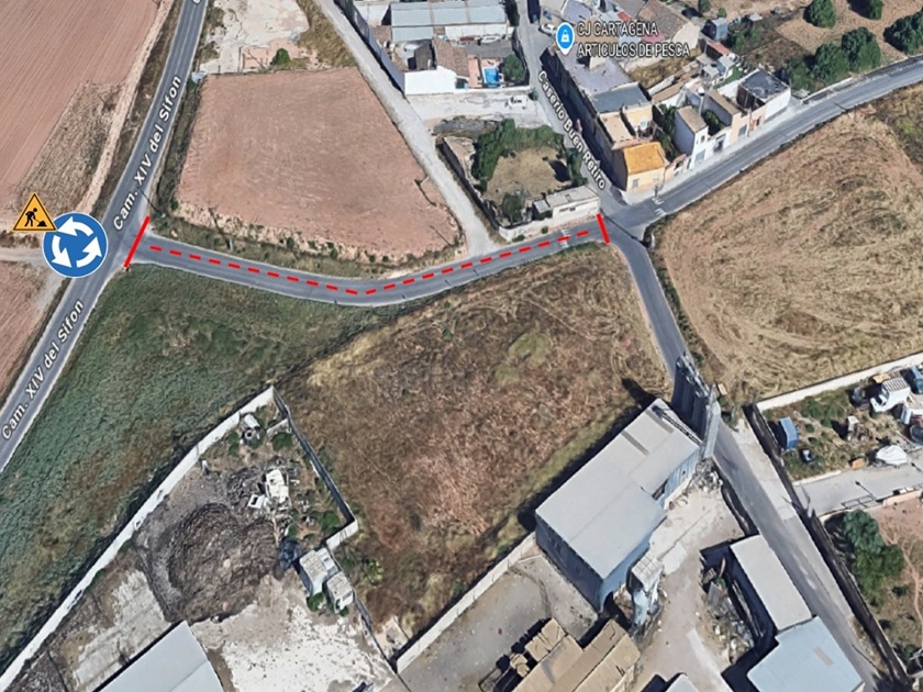 La Policía Local de Cartagena ha informado de nuevos cortes de tráfico en el Camino del Sifón para este jueves 11 y viernes 12 de diciembre, debido al avance de las obras de la nueva rotonda de acceso a la Barriada San Cristóbal (Bohío) y Los Dolores.