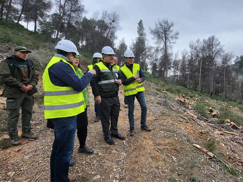 Durante su visita, el consejero comprobó los trabajos iniciados en febrero de 2026 en el entorno del Puerto de la Cadena, donde se están llevando a cabo labores de corta de policía, astillado y desbroce en una superficie de 76 hectáreas, con una inversión de 277.571 euros y una ejecución prevista hasta junio de 2026.