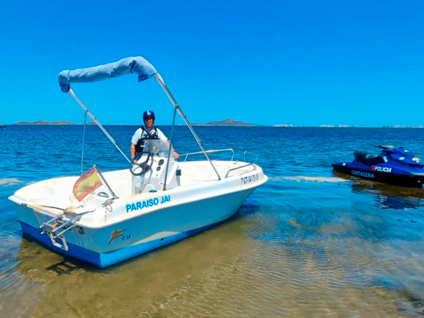 Este pasado lunes, agentes adscritos a la unidad de motos náuticas de Policía Local de Cartagena, localizaron en la costa de Los Urrutias una embarcación que había sido sustraída a su dueño en días anteriores en La Manga.