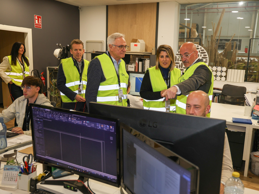 La alcaldesa de Cartagena, Noelia Arroyo, y el alcalde de Torre Pacheco, Pedro Ángel Roca Tornel, visitaron la planta acompañados por el gerente de Talasur, Salvador Bernal, para conocer de primera mano el modelo de industrialización basado en eficiencia, innovación y tecnología, con previsión de llegar al mercado en primavera de 2027.