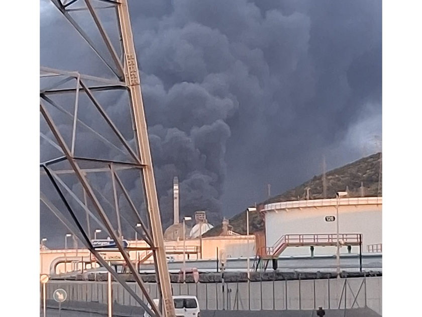 Un incendio registrado en la tarde de este lunes en la refinería de Repsol del Valle de Escombreras, en Cartagena, ha generado una columna de humo negro visible desde gran parte de la ciudad, lo que ha provocado decenas de llamadas de alerta a los servicios de emergencias. El incidente se produjo poco antes de las 18:00 horas tras una explosión en un tanque de almacenamiento de crudo, según confirmaron fuentes del 112 Región de Murcia.