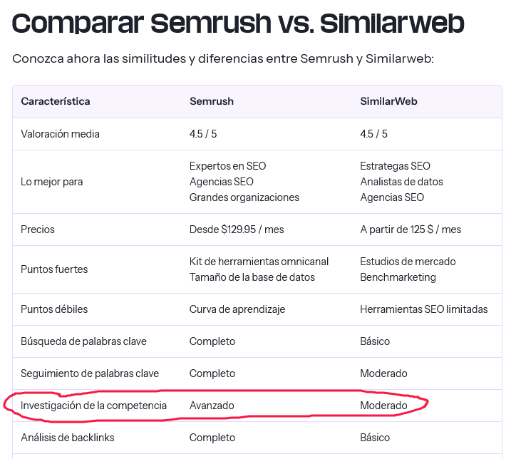 Pero insisto, hay demasiados cabos sueltos como para creerse estos datos (los buenos y los malos). Y por eso, busco posibles explicaciones. Y hay más en Similarweb, pero como he comentado antes, cuando la usaba siempre contrastaba sus datos con otras herramientas parecidas, por ejemplo, Semrush, que según datos de la propia SimilarWeb, es mucho más popular y usada actualmente que ella misma. Y por supuesto, y aunque siempre habrá opiniones para todos los gustos, son mayoría los expertos que consideran que para medir a la competencia es mejor Semrush que Similarweb. Aquí van dos ejemplos.