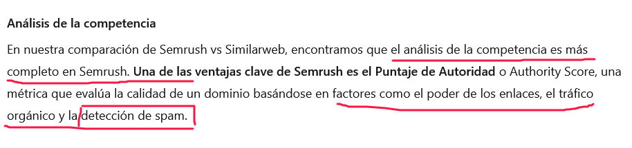 Existen otras herramientas que ofrecen su opinión sobre la “autoridad del dominio”, como AhRefs, Moz (y cada una da un resultado distinto), pero a la hora de medir el tráfico auténtico, Semrush está considerada la mejor (Ahrefs se centra en los enlaces y la versión gratuita de Moz es demasiado básica). Y desde luego, mejor Semrush que SimilarWeb, como dicen la mayoría de expertos para analizar a la competencia. También tiene en cuenta otros factores como la antigüedad del portal, por ejemplo.
