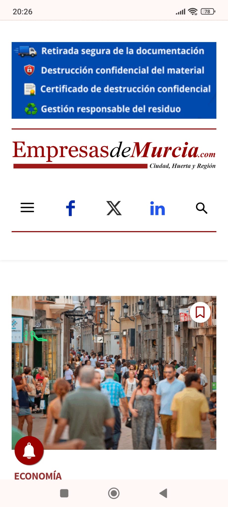 Eso, teniendo en cuenta dos cosas. La primera, que El Nuevo Digital Murcia se construyó (así lo quisieron sus fundadores, y lo sé porque lo construí yo) dando prioridad absoluta a la pantalla del PC e ignorando a los lectores del móvil, que son mayoría. Y segundo, nosotros adaptamos los banners para que se vean bien en todos los dispositivos. En este caso, dividiendo el banner en varias pantallas rotatorias para que se vea bien el texto indicado por el cliente.